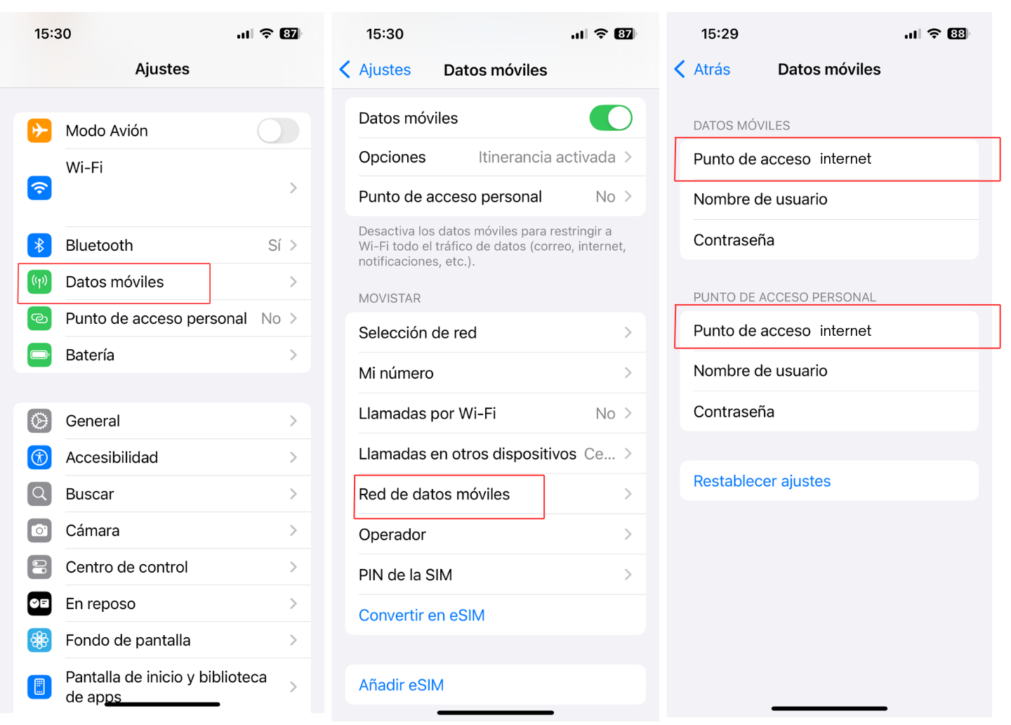 Si tu tarjeta SIM ya está activa y necesitas configurar Internet, puedes encontrar las instrucciones en los siguientes enlaces: